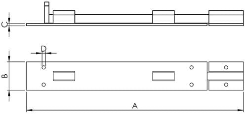 Hollex Kastenverschluss aus Edelstahl (AISI 316) – Rechteckig, 251 x 33 mm