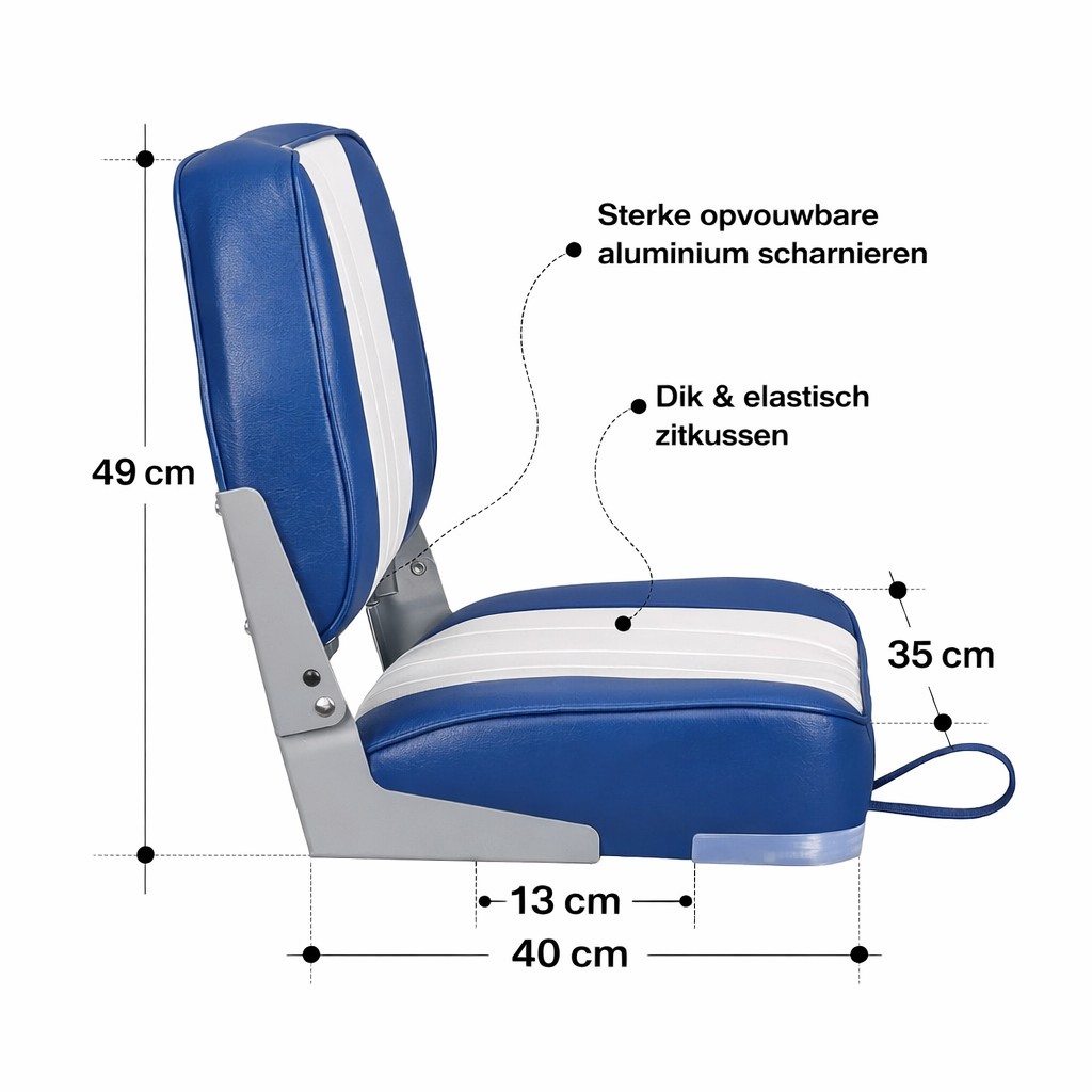 Lage rug bootstoel wit navy blauw opvouwbaar model 49x40x39 cm met 13x13 cm montagepatroon