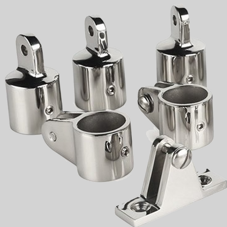 Mooie biminitop in het blauw van het merk Ocean South. 25 mm aluminium buis. Hier is gekozen om de bimintop op een raiing te zetten. Je kunt hier dan optioneel scharnierende schuifbeugels bij bestellen zodat je niet hoeft te boren op de boot. Een set achter steunpalen maken de set compleet